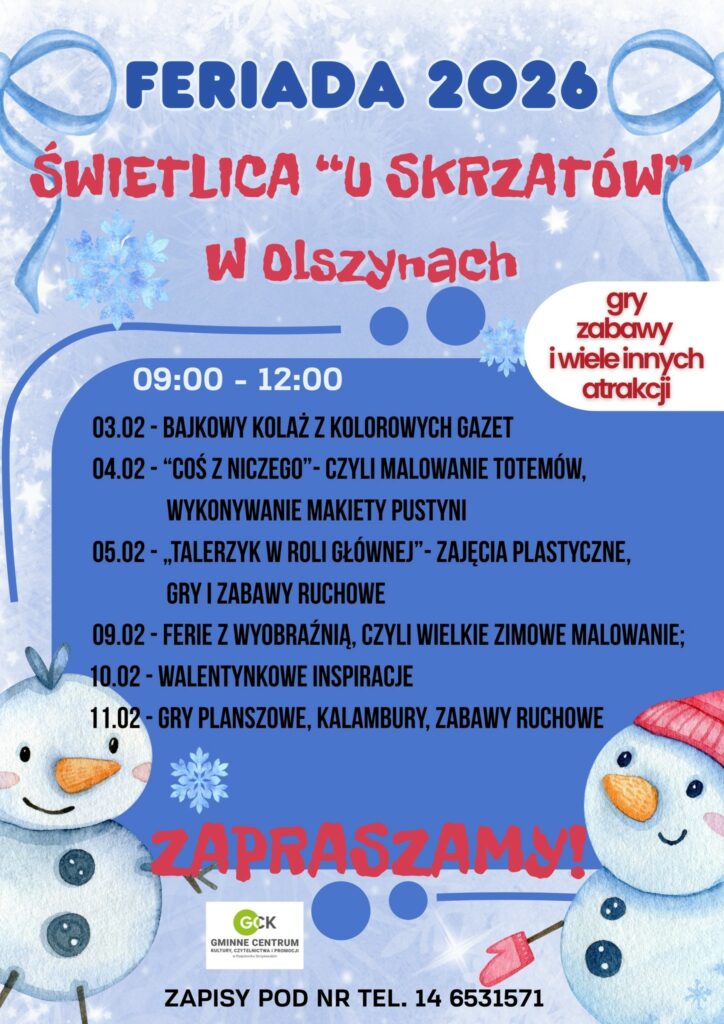 Zapraszamy na zajęcia dzieci od 6 lat w czasie ferii szkolnych. Szczegóły na plakacie.